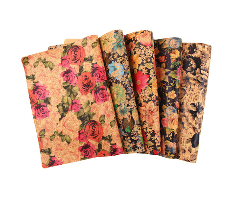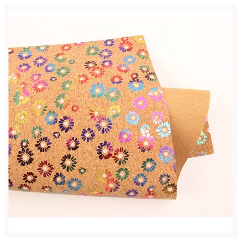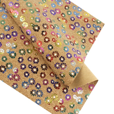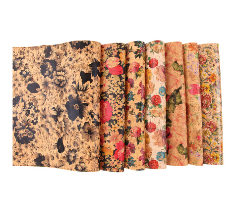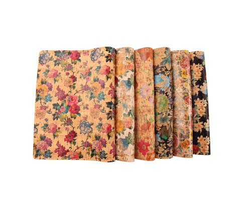 Infocork 45*30ซม. ผ้าคอร์กแท้ธรรมชาติโปรตุเกส-ดอกไม้ด้วยฟิล์มดอกไม้สีดำแผ่นหนัง PU ไม้ก๊อกสุ่มโดยชิ้น