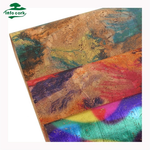 Infocork สีรุ้งที่แปลกใหม่สีรุ้งที่มีสีสันเป็นมิตรกับสิ่งแวดล้อมธรรมชาติคอร์กหนังสำหรับกระเป๋ากระเป๋าสตางค์วัสดุ